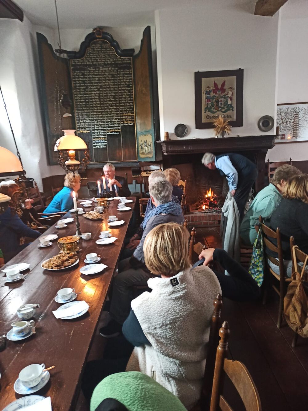 Am 24. Oktober 2025 um 16:00 Uhr waren wir zu Gast bei der Theelacht. Die Theelacht zu Norden ist ein seit rund 1100 Jahren auf genossenschaftlicher Basis geführter Familienverband und damit der weltweit älteste genossenschaftliche Zusammenschluss. Die traditionsreiche Vereinigung hat ihren zentralen Verwaltungssitz in der Theelachtskammer des Alten Rathauses am Norder Marktplatz wo sich die Mitglieder treffen. Der Raum war liebevoll so hergerichtet, als würde gleich eine echte Theelacht-Sitzung beginnen. Petroleumlampen, Kerzenlicht und Kaminfeuer sorgten für eine gemütliche und stimmungsvolle Atmosphäre. Für uns Küstenfrauen wurde traditionell Tee und Krintstuut serviert.